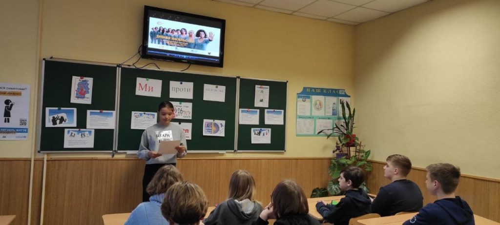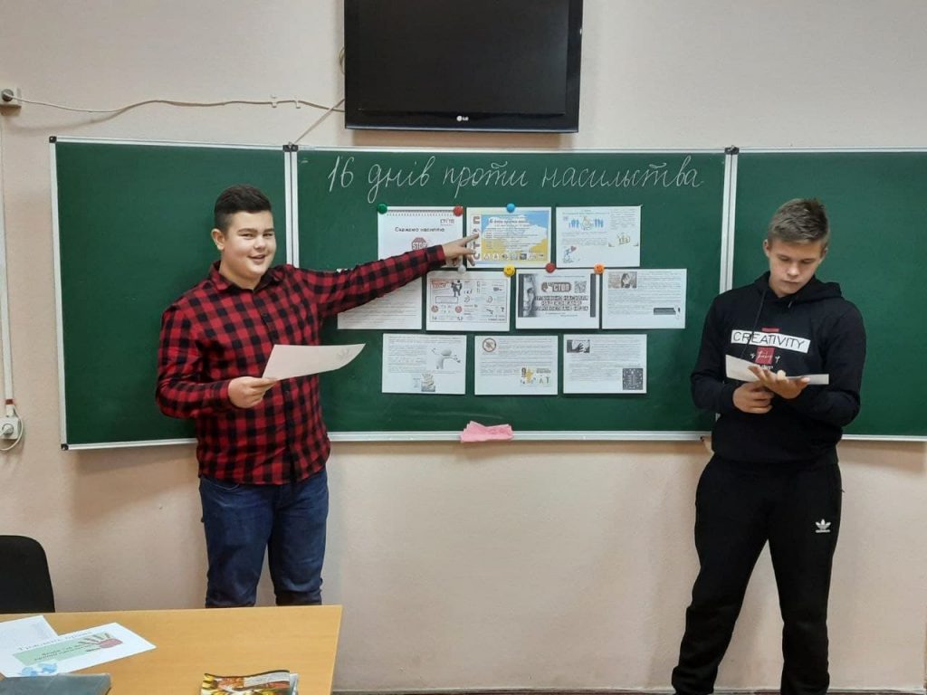 Щорічно в Україні з 25 листопада до 10 грудня включно проводиться Всеукраїнська акція «16 днів проти насильства».В рамках акції для привернення уваги суспільства до проблем подолання насильства у сім’ї, жорстокого поводження з дітьми, протидії торгівлі людьми та захисту прав жінок в гімназії були проведені виховні заходи.