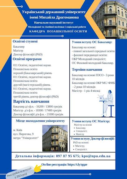 Інформуємо про проведення Днів відкритих дверей в Українському державному університеті імені Михайла Драгоманова (Навчально-науковий інститут молодіжної та сімейної політики і соціальної роботи).